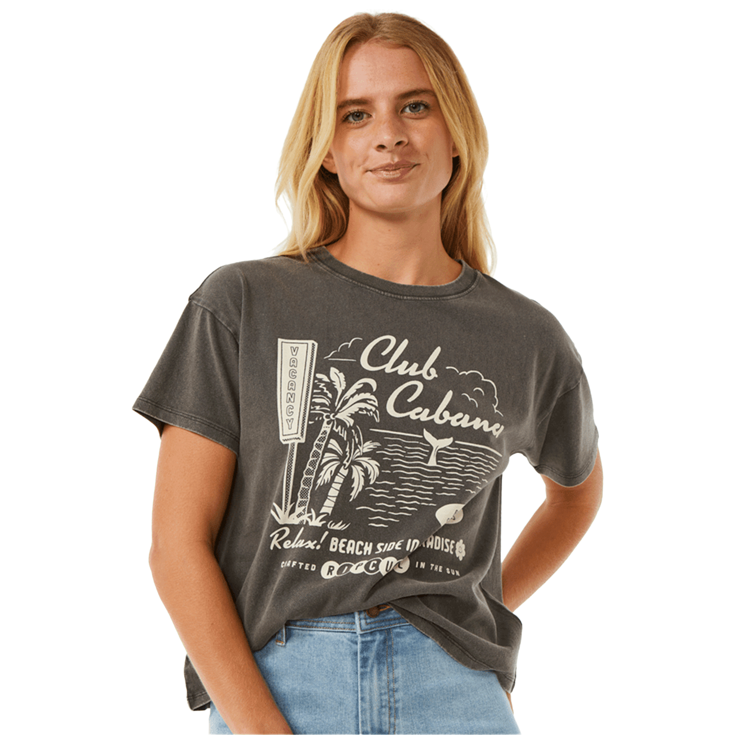Rip Curl Women's Club Cabana Relaxed T Shirt Washed Black