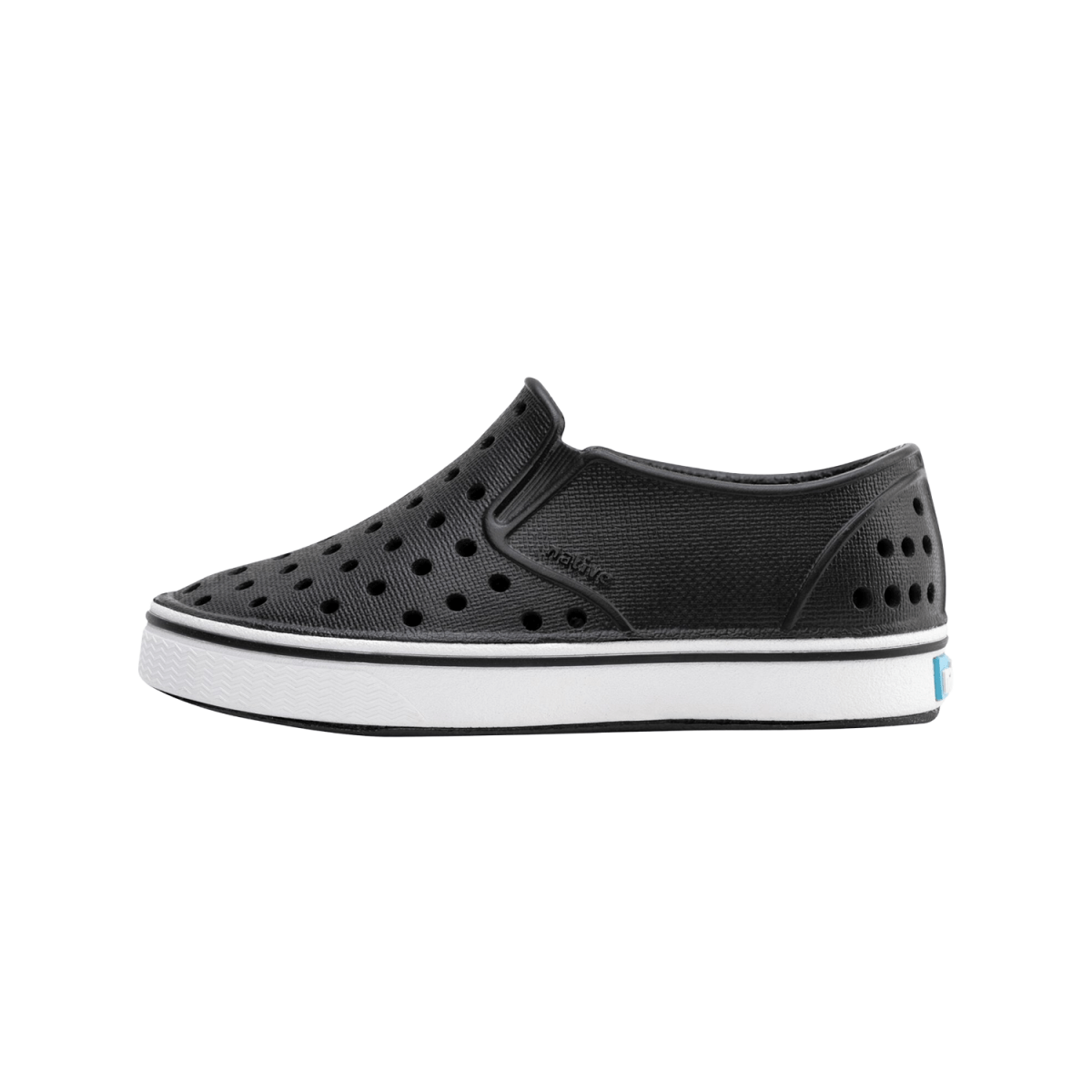 The Native Youth Miles Shoe features a wider slip-on fit with a lightweight, washable EVA upper that promotes breathability through perforations. Its dual-density EVA midsole offers cushioning and support, while the EVA cup outsole provides durable traction with a subtle painted stripe accent. Antibacterial properties help maintain freshness during extended wear.