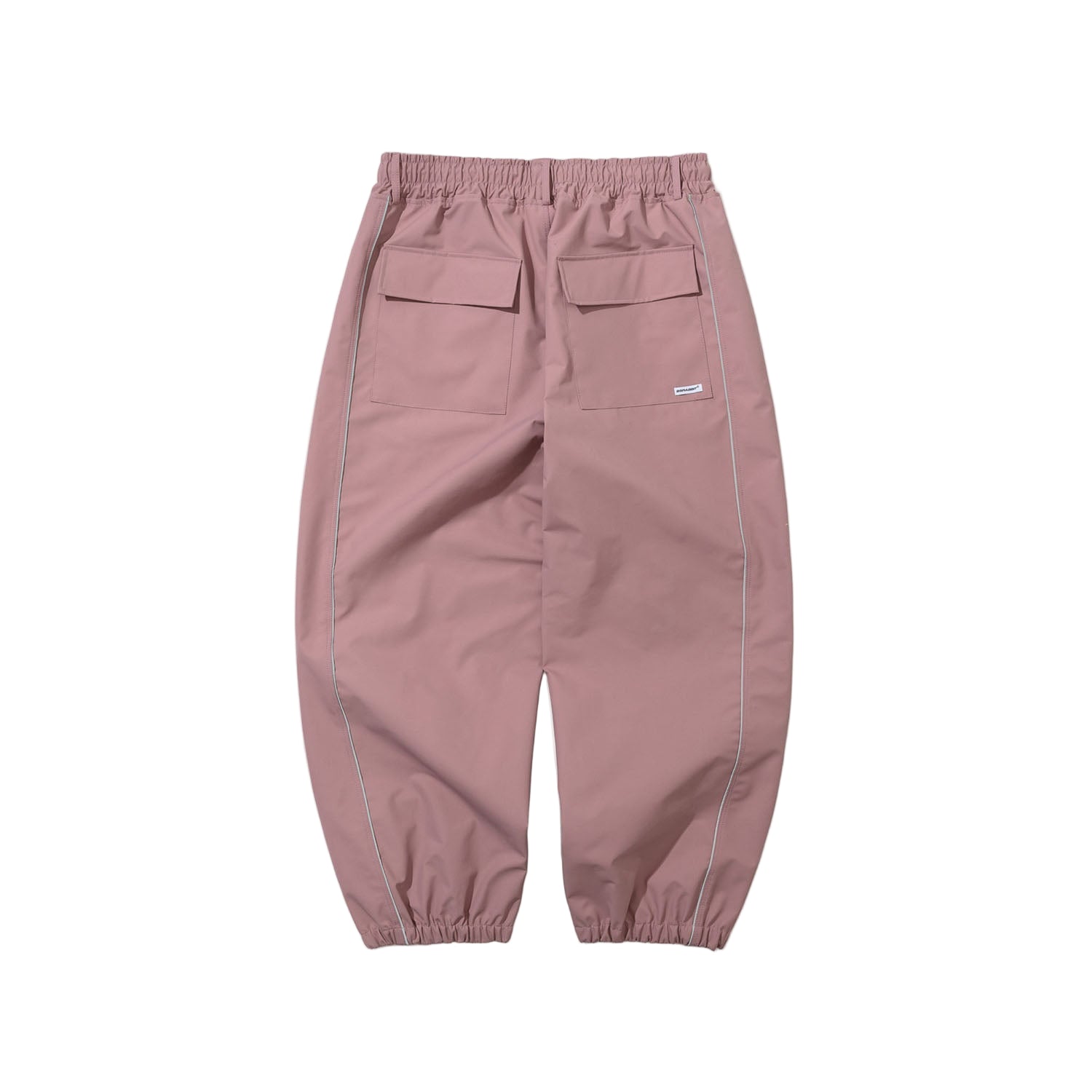 Functional detailing ensures comfort and practicality. Adjustable waist drawstrings offer a secure, customizable fit, while zippered hand pockets and rear Velcro flap pockets keep essentials close and protected. An elastic hem provides a clean finish that retains warmth without restricting movement. Finished in a soft Indy Pink tone, these joggers combine technical weather resistance with a sleek, contemporary look suited for all-season versatility.