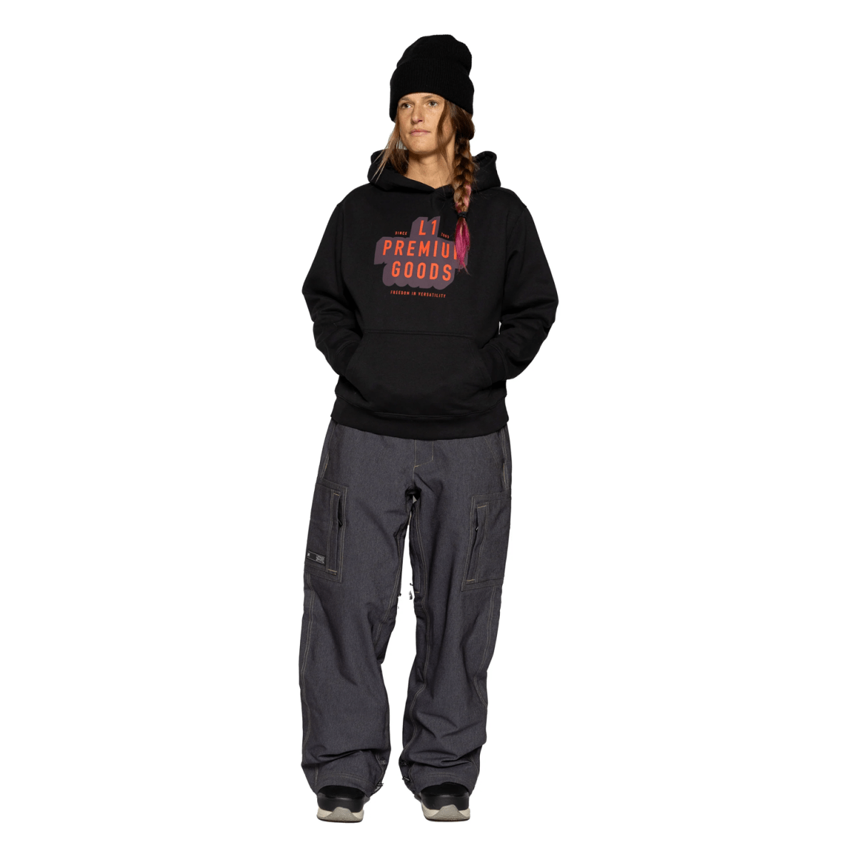 Engineered from a 2-layer polyester shell with polyurethane membrane, the L1 Women's Fairfield Cargo Pant offers dependable weather protection and a relaxed, oversized fit inspired by 1990s snowboard design. The shell achieves 20K/20K waterproofing and breathability in standard colorways and 10K/10K in the denim option, supported by a PFC-free DWR finish and critically taped seams for enhanced durability.