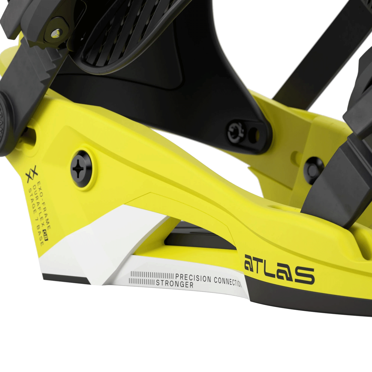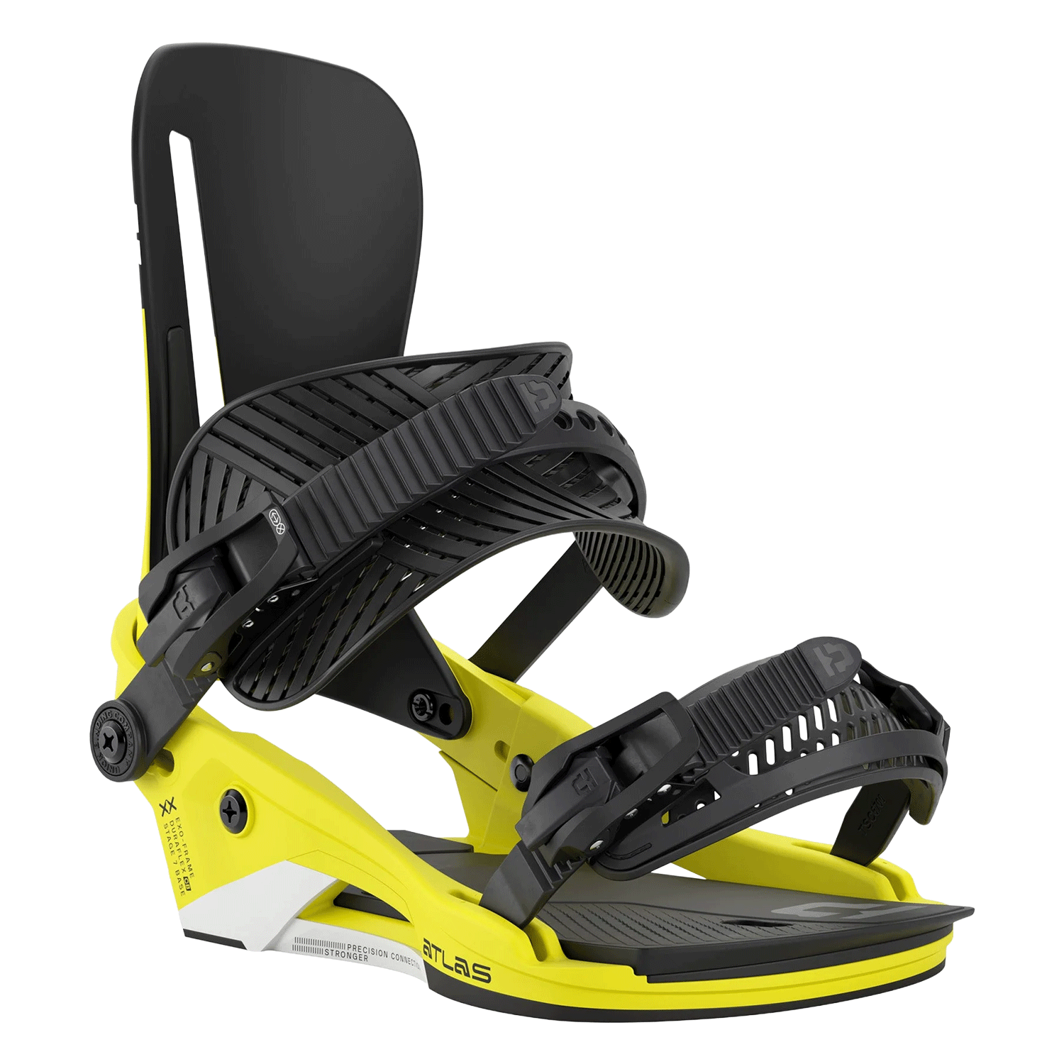 S22 Duraflex CB highbacks transmit heel-to-toe input fast, while Exoframe 5.0 ankle straps and TS 6.0 toe straps keep boots centered and supported. Magnesium S1 ratchets with a steel base and Grade 8.8 steel hardware add long-term reliability. With NEW Tool-Less 3.0 FLAD and tool-less strap adjustment, the Union Atlas stays dialed from park laps to backcountry hits.