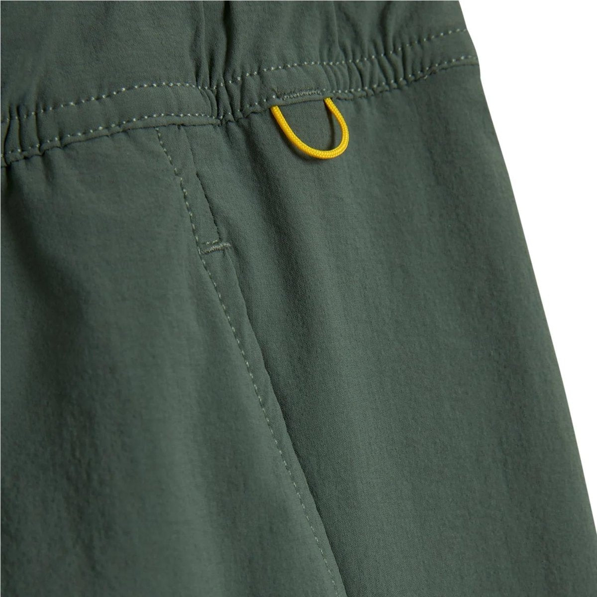 - 17.5″ outseam (7" inseam) length falls above the knee.Yellow utility loop serves as sunglass / key holder, or a spot to hang your garment to dry.